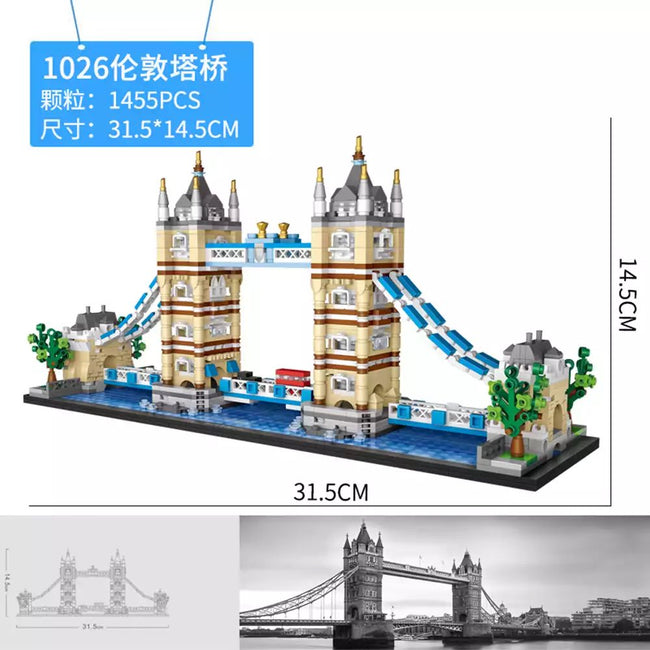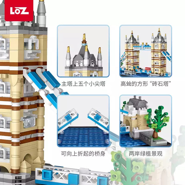 - LOZ 1026 Tower Bridge Building Architecture Nano Diamond Creative Brick 1455pcs