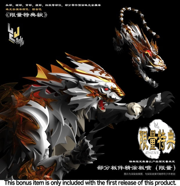 The white tiger that controls the west in Chinese mythology is now a powerful mecha model kit from Shenxing Technology! The first release of this kit features some gold-plated parts for an extra-luxurious appearance! (These parts are only available in the first release of this kit; if yours does not include these parts, it was not part of the first release.) This fierce beast is assertively sized, and will be a commanding presence in your collection -- order yours today!