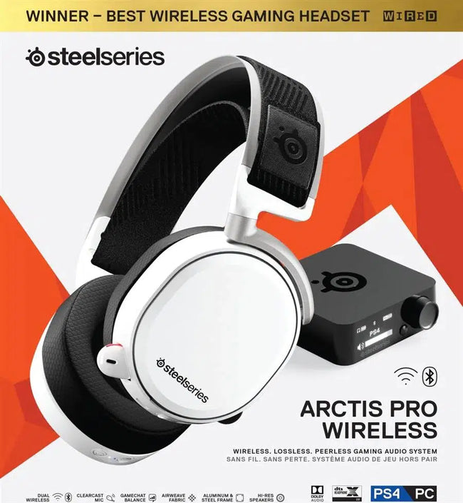 - SteelSeries Headset Arctis Pro Wireless Gaming Headset - Lossless High Fidelity Wireless + Bluetooth for PS5/PS4 and PC - White