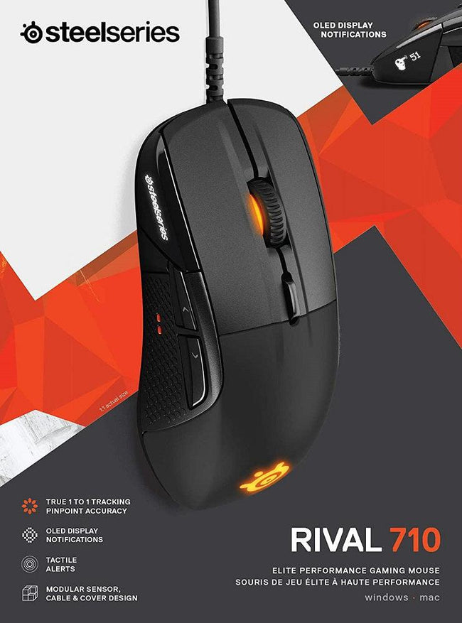 SteelSeries Mouse Rival 710 Gaming Mouse - 16,000 CPI TrueMove3 Optical Sensor - OLED Display - Tactile Alerts - RGB Lighting, Black