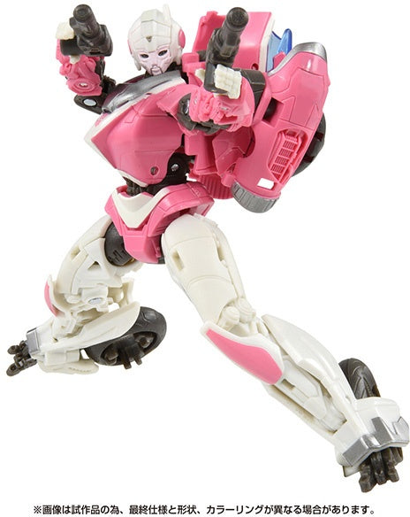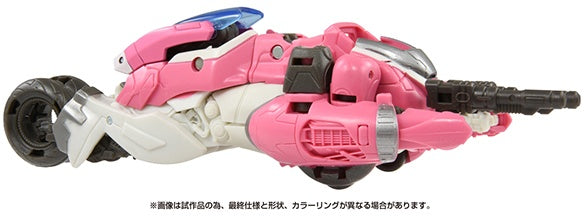 Arcee from "Transformers" joins the "Transformers Studio Series" action-figure lineup from Takara Tomy! Seen here as she appeared in the "Bumblebee" movie, Arcee transforms into a motorcycle-type SF vehicle; she's not afraid to be at the forefront of battle, too. She comes with two gun-shaped weapons that can be used as muffler parts in her vehicle mode. Order her for your own collection today!