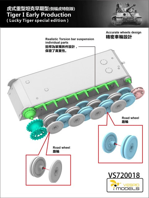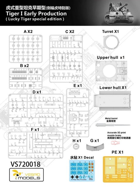Vespid Models 1/72 Tiger I Early Production (Lucky Tiger Special Edition) Metal Barrel + 3D Print Muzzle Brake