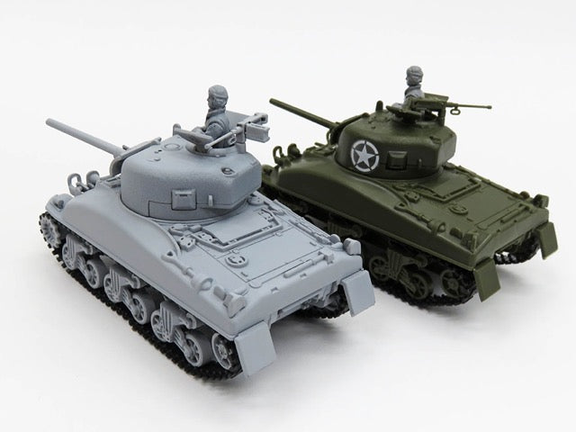 The M4 is a medium tank developed by the United States during World War II. It was provided not only to the U.S. but also to Allied countries and became one of the tanks representative of the war. Development started by using the body of the M3 medium tank, which had been in mass production since 1941, and equipping it with an all-around turret. In October, it was decided to formalize it as an M4 medium tank. Mass production began in February 1942, taking advantage of the industrial productivity of the United States. At that time, there were difference in specifications depending on the manufacturer ad other factors, and each was distinguished by a different model name. Among them, the first to start mass production was the M4A1, which adopted integrated casting for the upper hull. Compared to the M4, which had a welded body, there are fewer processes, so mass production started earlier, and it became the first mass-production model. In the initial version, the main gun is a 37.5 caliber 75mm tank gun M3. The engine was a Continental star nine-cylinder air-cooled gasoline engine. Three companies were in charge of production, and by November 1943 a total of more than 6,000 vehicles were produced.