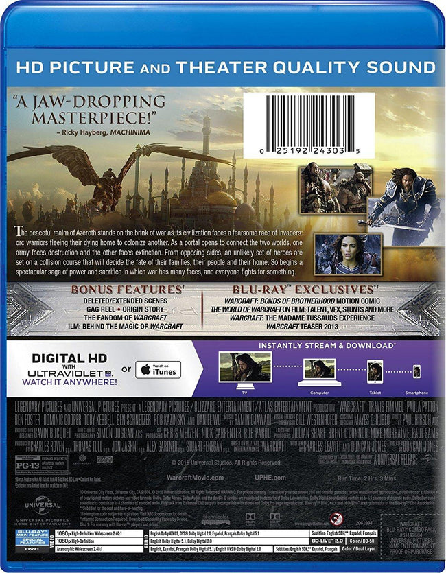 The peaceful realm of Azeroth stands on the brink of war as its civilization faces a fearsome race of invaders: orc warriors fleeing their dying home to colonize another. As a portal opens to connect the two worlds, one army faces destruction and the other faces extinction. From opposing sides, an unlikely set of heroes are set on a collision course that will decide the fate of their families, their people and their home. So begins a spectacular saga of power and sacrifice in which war has many faces, and everyone fights for something.