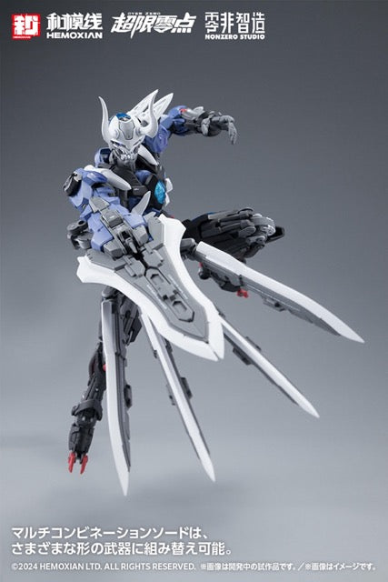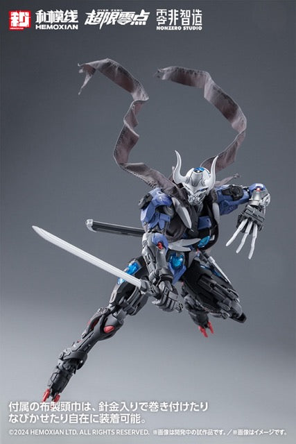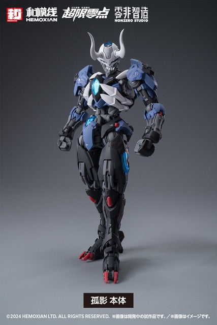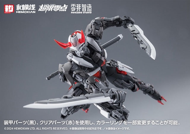 Wave brings us the second installment in their "Over Zero" plastic model kit series with this full-set release of Lone Shadow, the mysterious ninja cyborg! The kit snaps together, and features color-coded and partially painted parts, so you can get a great result just by assembling it, without the need for additional paint. The joints have a wide range of motion, and soft materials are used in strategic areas for incredible posability. He's armed with his multi-combination sword that can be reassembled into a large shuriken, as well as a kunai, shields, swords, and kusarigama. A fabric hood with a wired hem is included. The black armor parts and clear red parts can be used to change the color of some of the body; four interchangeable face parts are also included, so he can be reassembled into any member of the NOBODY Team: Zero One, Zero, Two, Zero Three, and Zero Four. A display base and a multi-function panel that can be used to store his weapons are included, and as a first-time limited bonus, a set of effect parts and discharge effect parts are also included. Order him for your own collection today!