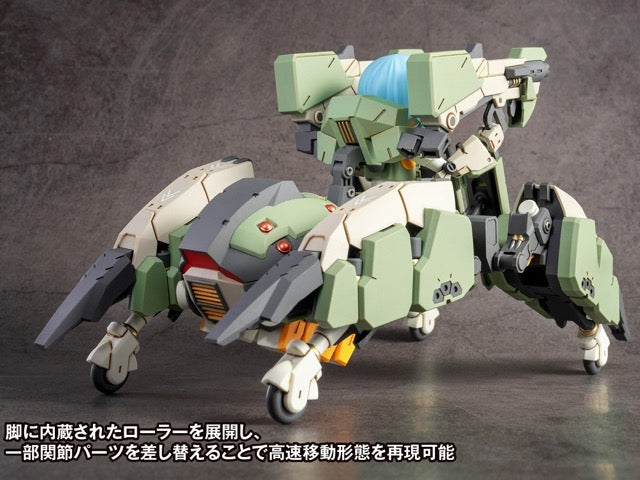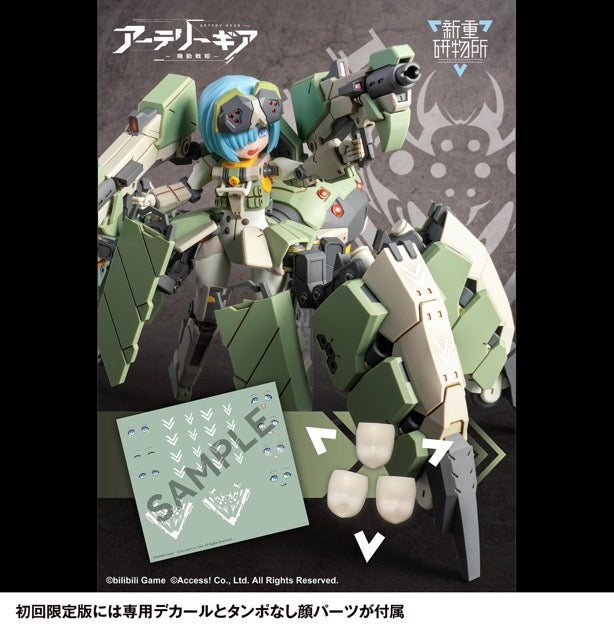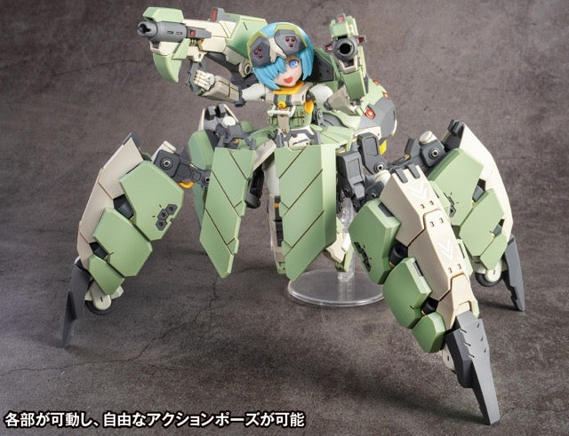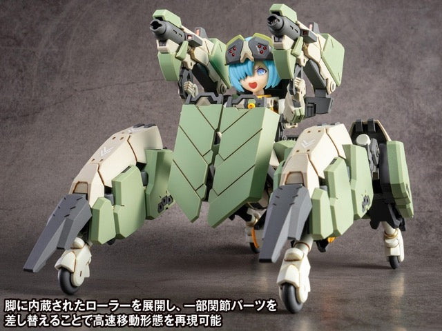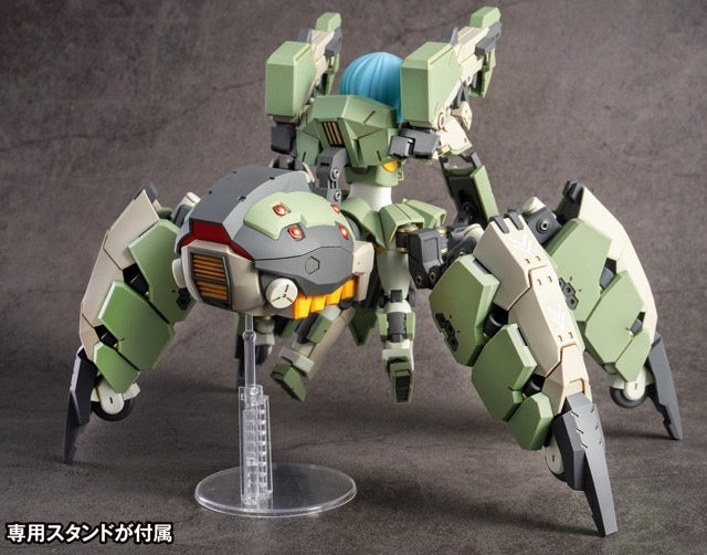 The Guard Spider AG-031 Feidy from the mobile game "Artery Gear" is now presented as a poseable plastic model kit! The rollers built into the legs can be deployed and the mechanical parts of Feidy can transform into the high-speed form. Accessories include three tampo printed face parts, five hand parts, and a stand. The limited first edition also includes decals for facial expressions and markings, as well as 3 face parts without tampo printing. It's molded in color, so painting isn't required, either! Order yours today!