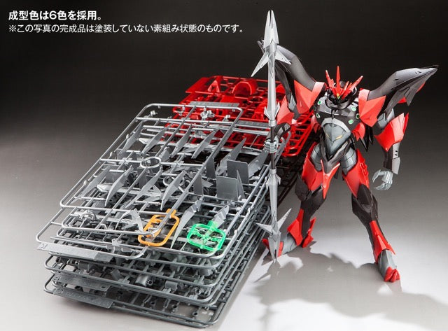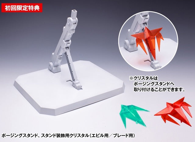 Tekkaman Evil from the 1992 TV anime "Tekkaman Blade" is now an amazing model kit from Wave! Its massive, sharp-edged form is duplicated as exactly as possible from the anime, and features jointing for a wide range of articulation and action poses. The Tech Lancer weapon is included in both its normal state and cross state, and Evil's characteristic armament, the Ram Shoulder, which attaches shoulder armor to both hands, can also be reproduced. Molded in six colors, this model kit will be very close to the character's appearance even without painting; it also snaps together. The First Press Limited Edition comes with a posing stand that allows you to display the figure in bold poses, and decorative parts for both Tekkaman Evil's and Tekkaman Blade's crystals. Place your order today!